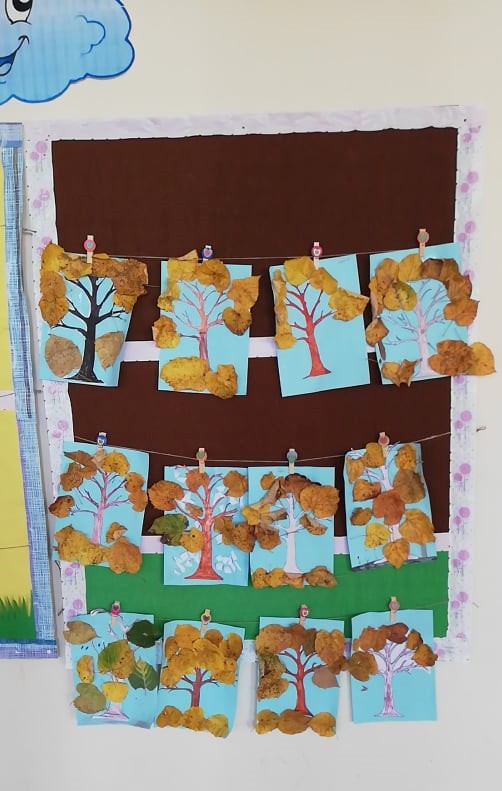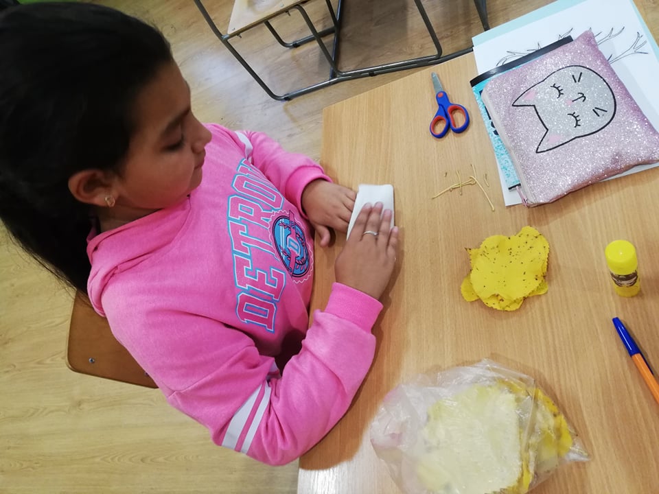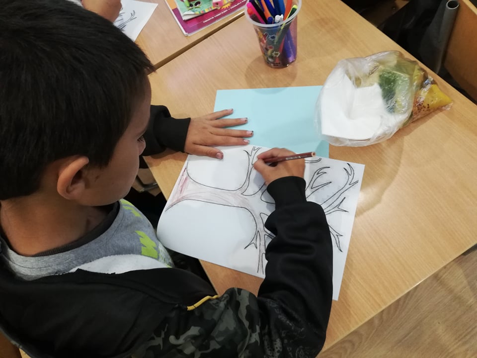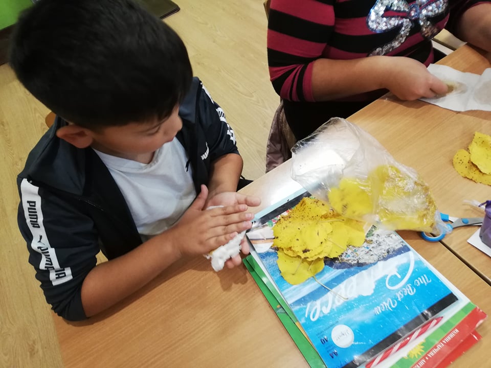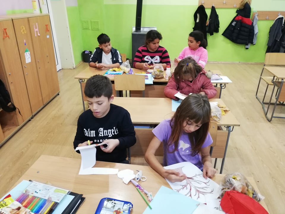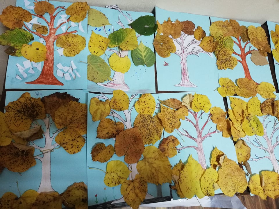 Природата е уникален художник – може да разбърква и смесва така цветовете, че да създаде неповторима палитра. Учениците от клуб „Природата и ние“ пресъздадоха богатството на есента с природни материали.